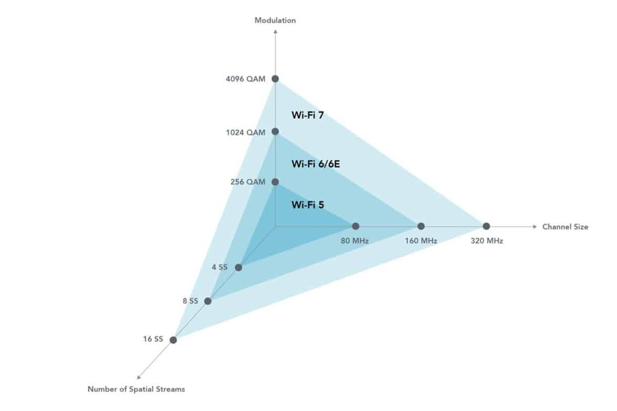 De IEEE werkgroep heeft vier cruciale verbeteringen doorgevoerd in Wi-Fi 7, elk met specifieke voordelen voor de gebruiker. Dit leidde tot een theoretisch maximum van 46 Gbps aan doorvoersnelheid, ruim 4,5 keer sneller dan Wi-Fi 6.