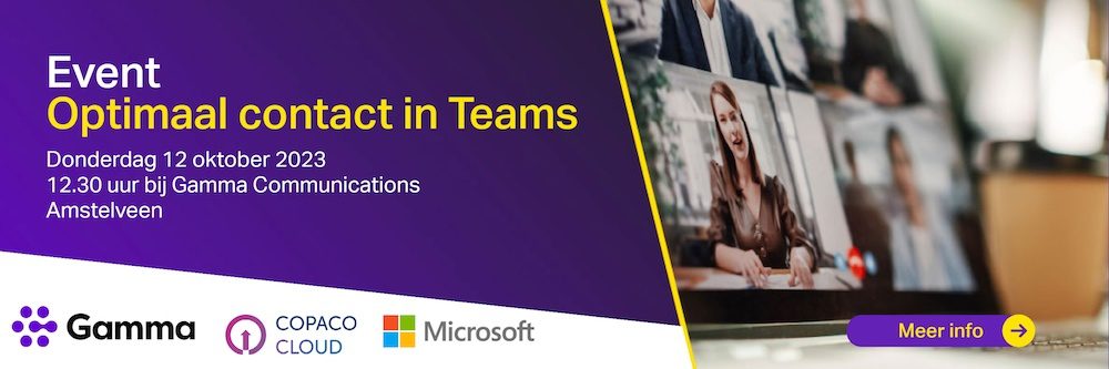 Gamma Communications brengt je op donderdag 12 oktober samen met Copaco en Microsoft in één middag volledig op de hoogte van de laatste ontwikkelingen op het gebied van Microsoft Teams en Modern Workplace.