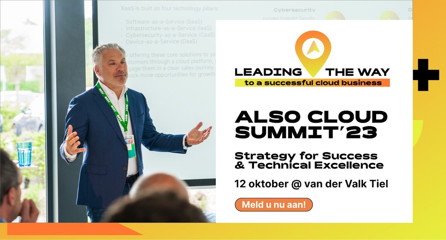 ALSO Nederland organiseert de ALSO Cloud Summit'23 aan, een conferentie waarop een diepgaande verkenning van cloud technologie centraal staat. De ALSO Cloud Summit biedt professionals kennis en inzichten over de mogelijkheden van en trends in cloud solutions. Het evenement vindt op 12 oktober 2023 plaats bij Van der Valk Hotel Restaurant Tiel.