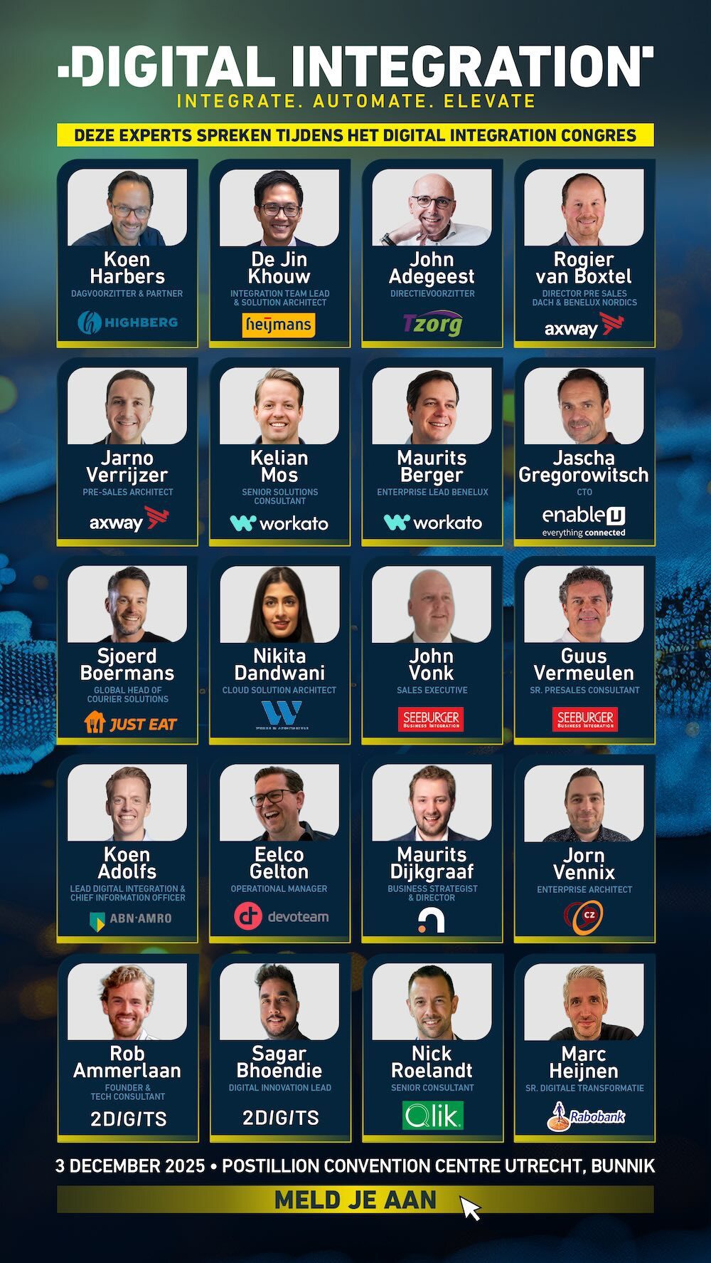Het programma Digital Integration 2025 omvat diverse inspirerende praktijkcases en sprekers. Een aantal highlights: