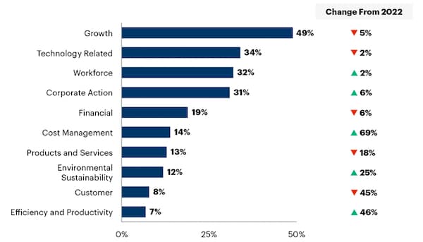 Figuur 1: Top strategische zakelijke prioriteiten van CEO's voor 2023-2024 (som van top drie vermeldingen)