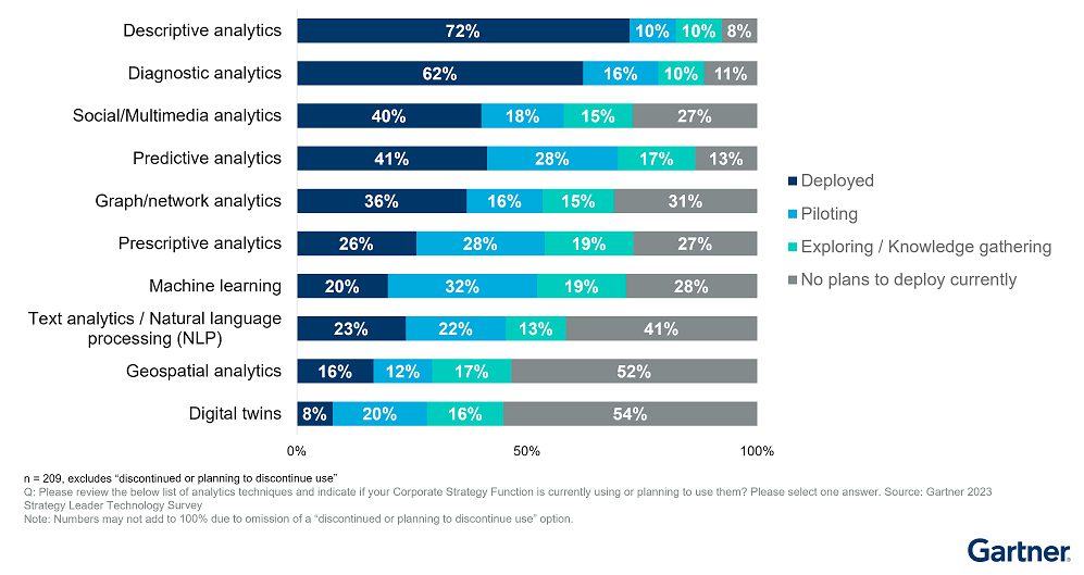 "Het benutten van analyses en AI voor efficiëntere, inzichtelijke strategische beslissingen is een van de grootste uitdagingen en kansen waarmee bedrijfsstrategen dit jaar worden geconfronteerd", zegt David Akers, Director, Research bij Gartner. “Jarenlang hebben strategen tegen hun bedrijven gezegd: als je concurrerend en effectief wilt blijven, moet je digitaal gaan. Nu lijken ze klaar om die richtlijnen toe te passen op hun eigen workflows.”
