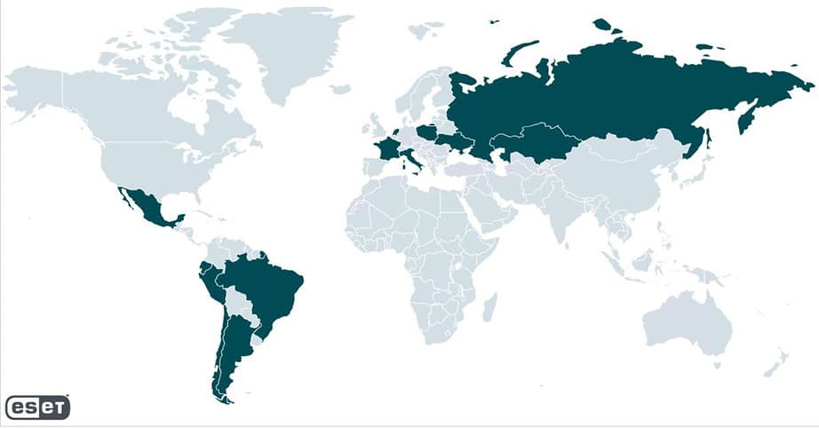 Landen getroffen door de campagne, volgens ESET-telemetrie