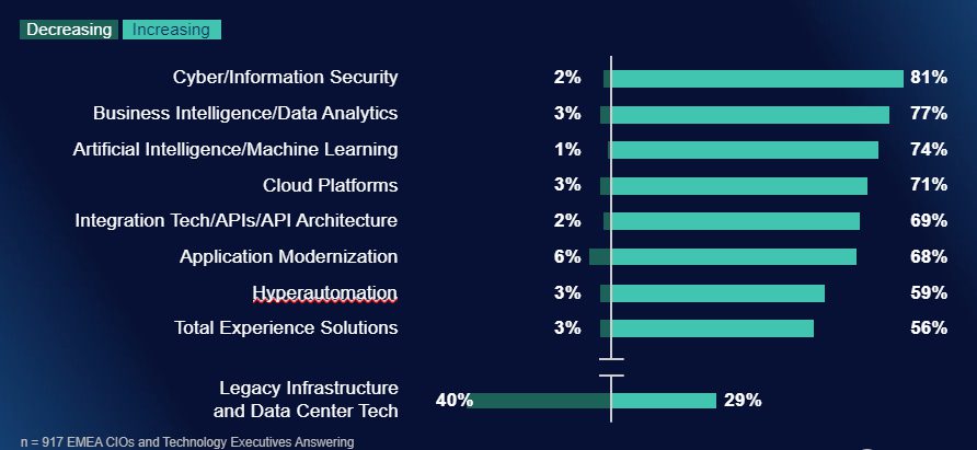 Figuur 1. Verwachte verandering in technologie-investeringen van CIO’s uit EMEA in 2024
