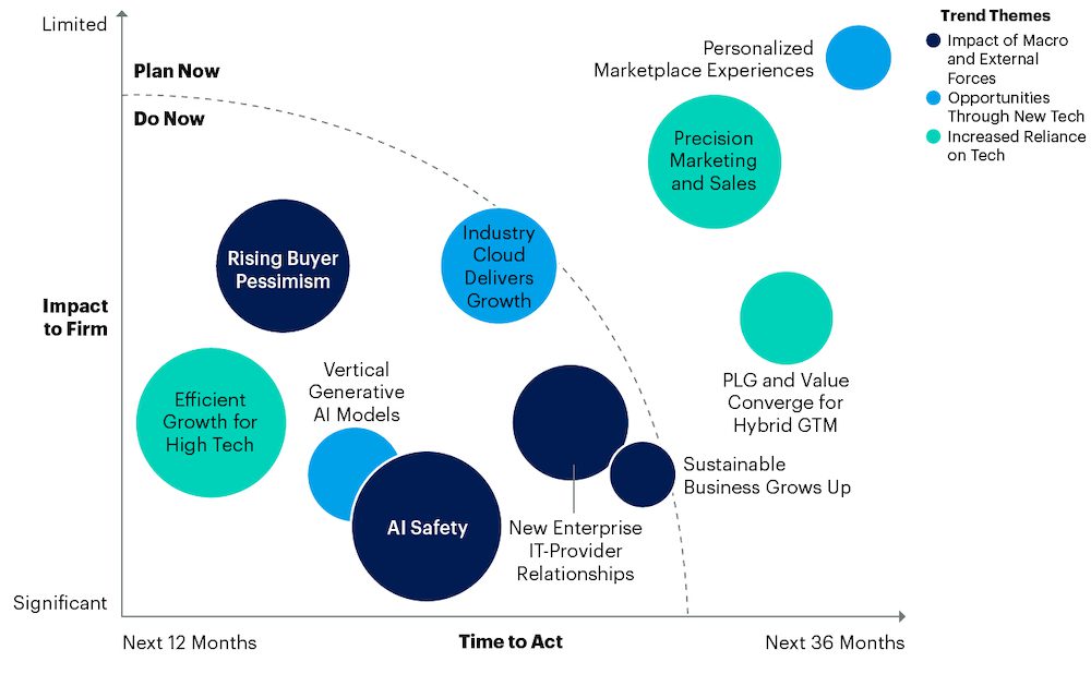 Snel evoluerende technologische ontwikkelingen, zoals GenAI, digitaal kopen en het metaverse, veranderen de manier waarop technologieproviders technologie op de markt brengen en verkopen. Technologieproviders die er niet in slagen een nieuwe aanpak te hanteren, zullen te maken krijgen met een erosie van de algemene kwaliteit van de deals, gecombineerd met een verlies aan relevantie en een beperkte groei binnen de gevestigde accounts.