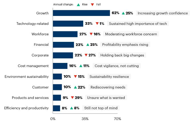 Figuur 1: Belangrijkste strategische bedrijfsprioriteiten van de CEO voor 2024-2025 - Top 10