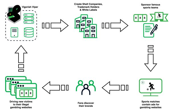 Een groep cybercriminelen genaamd Vigorish Viper maakt misbruik van geavanceerde technologie om te profiteren van de wereldwijde illegale sportgokindustrie ter waarde van $1.700 miljard. De cybercriminelen maken onderdeel uit van een Chinees georganiseerd misdaadsyndicaat.