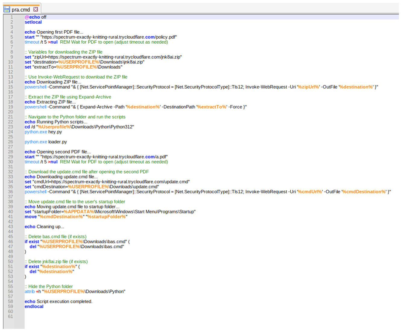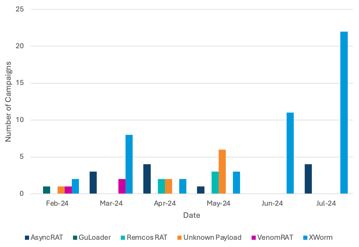 In juni en juli leverden de waargenomen campagnes Xworm, maar eerder zagen onderzoekers van het cybersecuritybedrijf ook AsyncRAT, VenomRAT, GuLoader en Remcos. Sommige campagnes leveren verschillende malware-payloads waarbij ieder uniek Python-script leidt tot de installatie van andere malware.