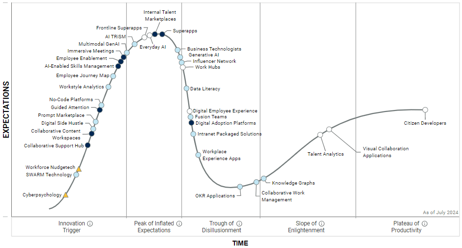 Afbeelding 1. Hype Cycle for Digital Workplace Applications, 2024