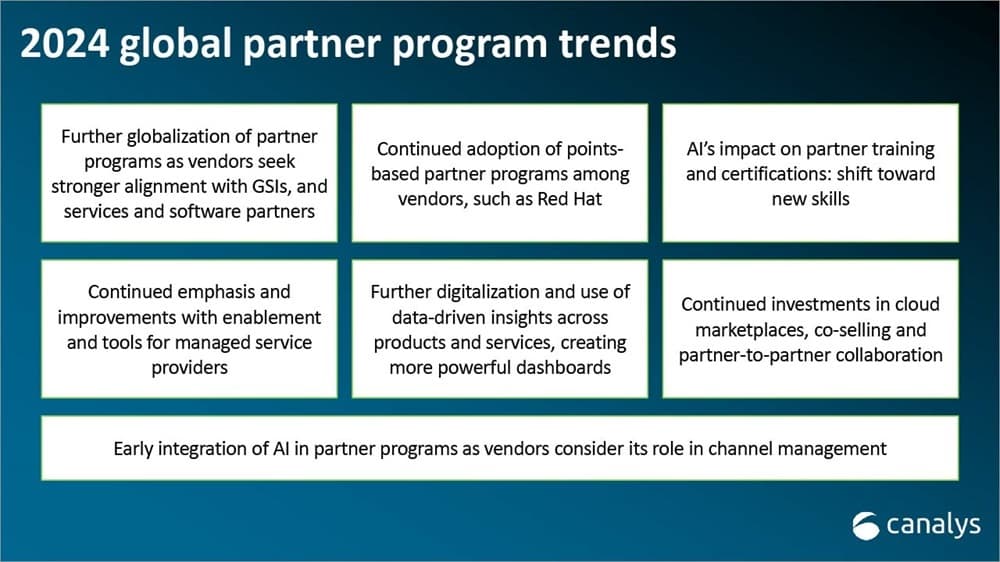 Als u een kanaalpartner bent die graag meer wil weten over de kansen op het gebied van AI, evoluerende partnerprogramma's, marktplaatsen, hybride cloud, cyberbeveiliging en meer, raden we u aan om u te registreren voor de Canalys Forums 2024 . Tijdens deze evenementen krijgen partners de kans om meer te weten te komen over de nieuwste trends op het gebied van AI en te ontdekken hoe zij zich snel kunnen aanpassen aan de veranderende behoeften van hun klanten, samen met topdistributeurs en leveranciers die zich op specifieke kanalen richten.