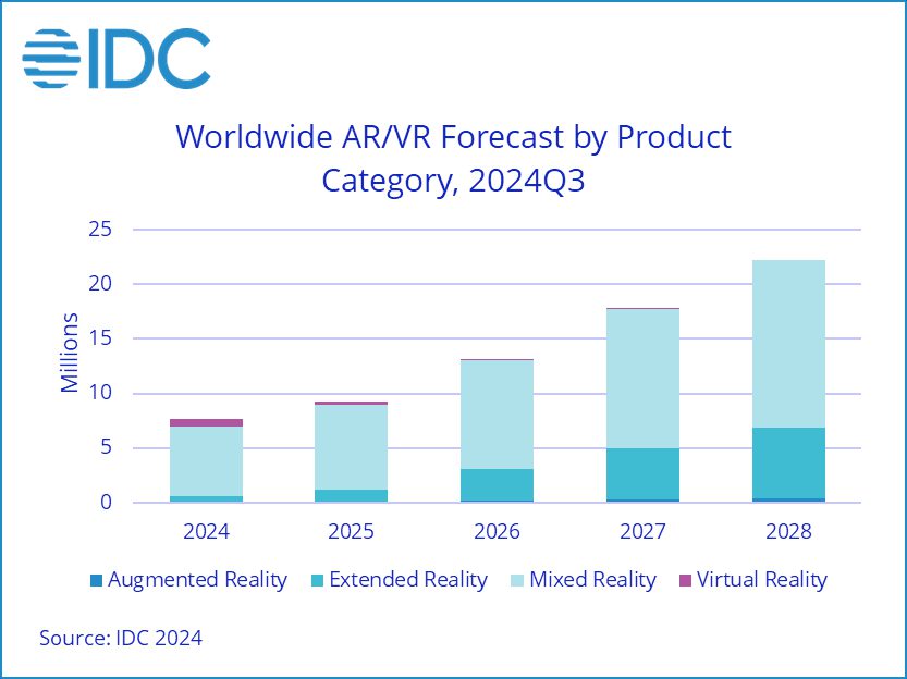 IDC verwacht dat Android XR samen met talrijke startups en gevestigde namen zoals Meta vde markt voor Extended Reality-headsets in 2025 ruim laat verdubbelen. Het segment groeit naar verwachting met een samengesteld jaarlijks groeipercentage (CAGR) van 85,7% tot eind 2028. Deze headsets blijven de op een na grootste categorie en functioneren voornamelijk functioneren terwijl ze zijn gekoppeld aan een smartphone of ander apparaat.