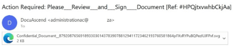 In een ander geval imiteerden aanvallers een melding van een e-handtekeningservice en boden een SVG-bijlage aan als een document dat moest worden bekeken en ondertekend.