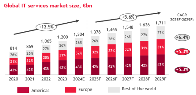 In 2023 groeide de wereldwijde IT-dienstenmarkt met 12%, mede door de snelle ontwikkeling van AI en de voortdurende wereldwijde digitale transformatie en cloudmigratie van bedrijven. Gedreven door deze ontwikkelingen, groeit ook de Europese cloudservicesmarkt in rap tempo. Naar verwachting in de periode 2024-2028 jaarlijks met een CAGR van 14,6%. Met de voortdurende vraag naar cloudgebaseerde diensten en het toenemende belang van cybersecurity en data-analyse, blijft de cloudmarkt dan ook een aantrekkelijke sector voor investeringen en strategische groei. BDO Advisory verwacht dat de sterke consolidatietrend in de Europese markt, aangedreven door PE-partijen en strategische kopers, blijft doorzetten, terwijl technologische innovatie en het gebruik van meerdere cloudproviders nieuwe kansen blijven creëren in de sector.