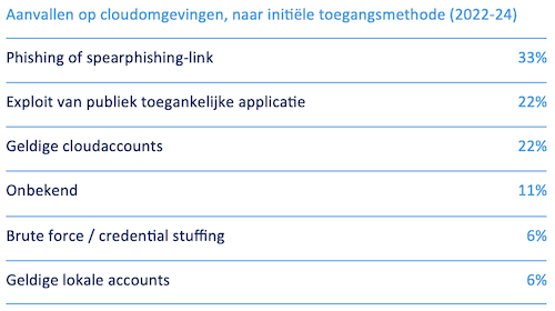 Phishing blijft de belangrijkste aanvalsmethode voor cloudgerelateerde incidenten en was verantwoordelijk voor een derde van de inbraken in 2023 en 2024.