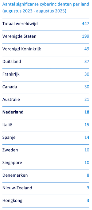 Achttien significante cyberincidenten in Nederland in twee jaar tijd