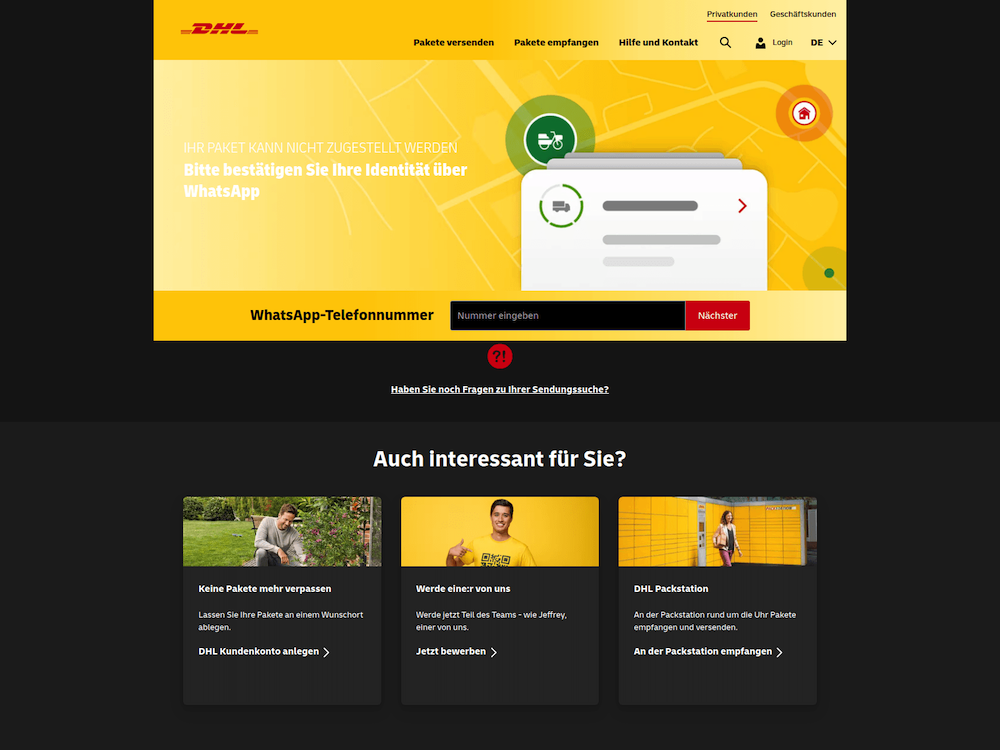 Na een periode van afwezigheid zijn PayPal en DHL opnieuw opgenomen in de lijst van meest nagebootste merken. Onderzoekers van Check Point ontdekten een frauduleuze DHL-website (dhl-login-check[.]org), die de officiële inlogpagina van de koeriersdienst nabootste. Gebruikers werden misleid om hun inloggegevens, e-mailadressen, telefoonnummers en huisadressen in te voeren, onder het mom van het volgen van een pakket. In werkelijkheid werden hun persoonlijke gegevens gestolen.